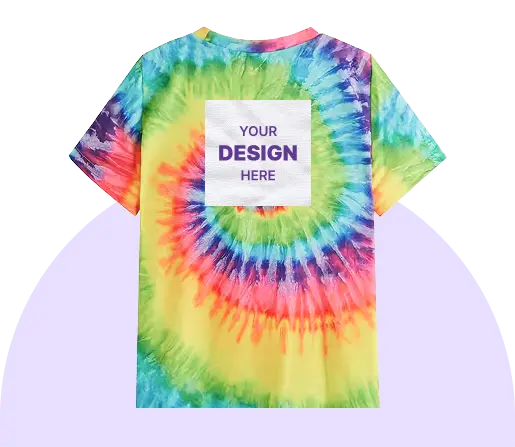 Choose your style, upload your design, and order your custom tie-dye shirts in less than a minute!