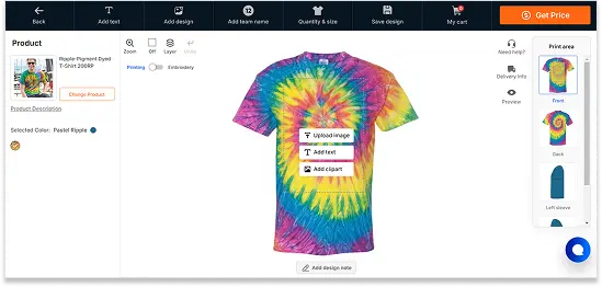 Many printing companies require bulk orders, but we believe that customization should be accessible to everyone. Whether you’re an artist launching your own merchandise, a small business looking to test a new design or someone who simply wants a unique shirt, you can customize your own tie-dye shirt without any restrictions.